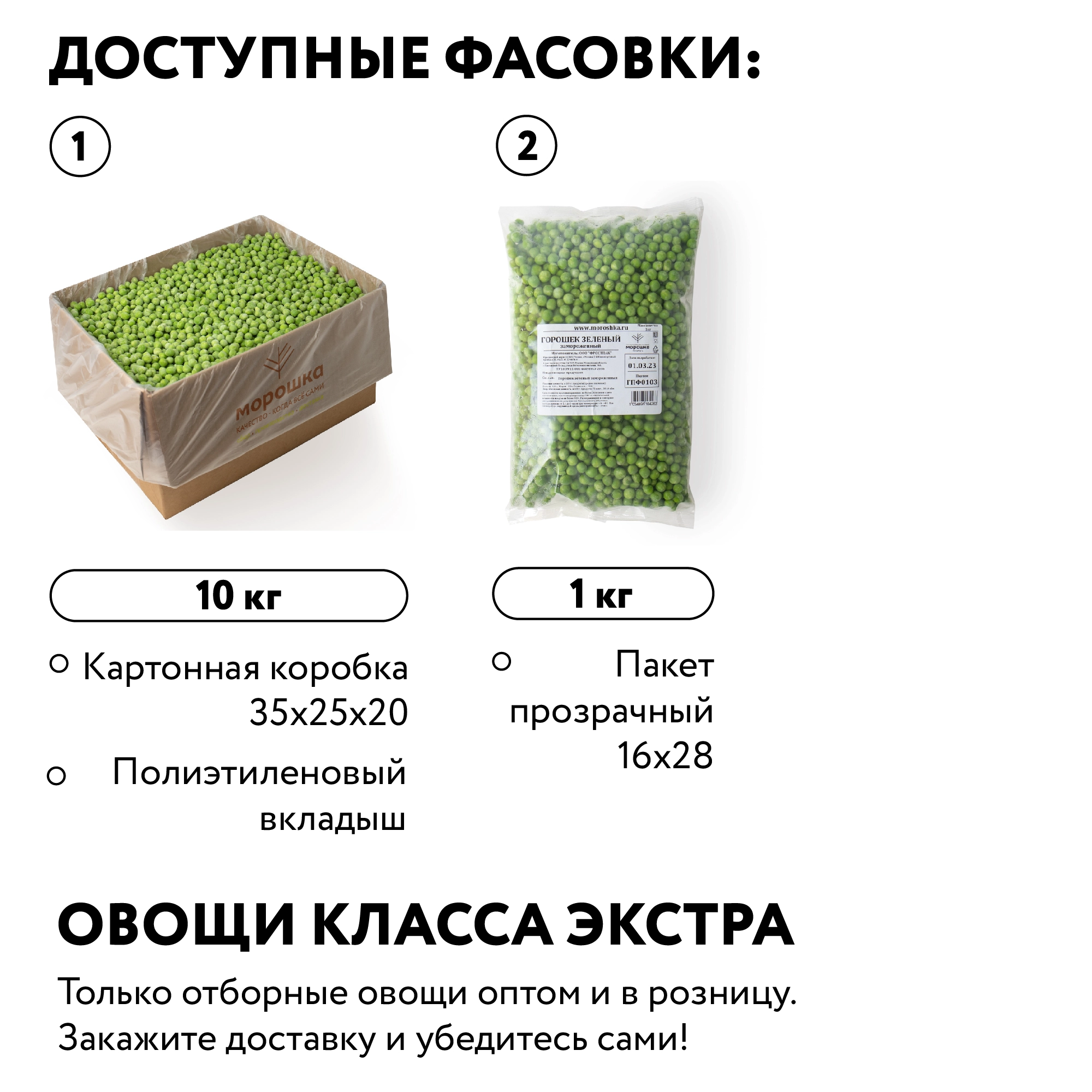 Отборный быстрозамороженный зеленый горошек. Хорошее качество. Шоковая заморозка.