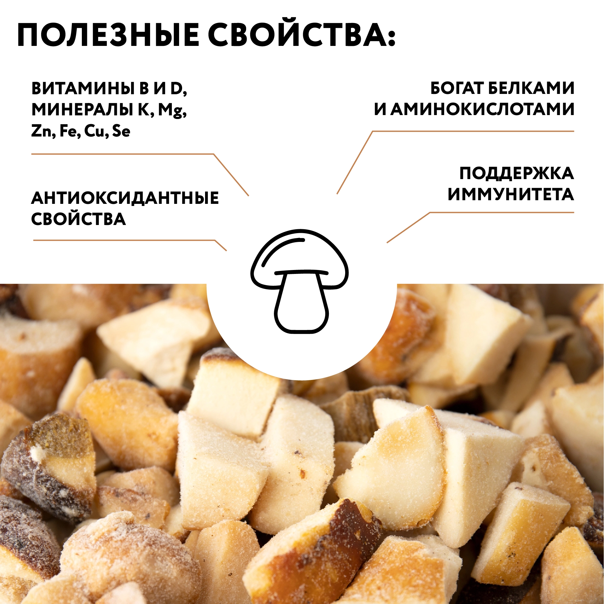 Замороженные Белые грибы долго хранятся в холодильнике и обладают теми же свойствами, что и свежие.