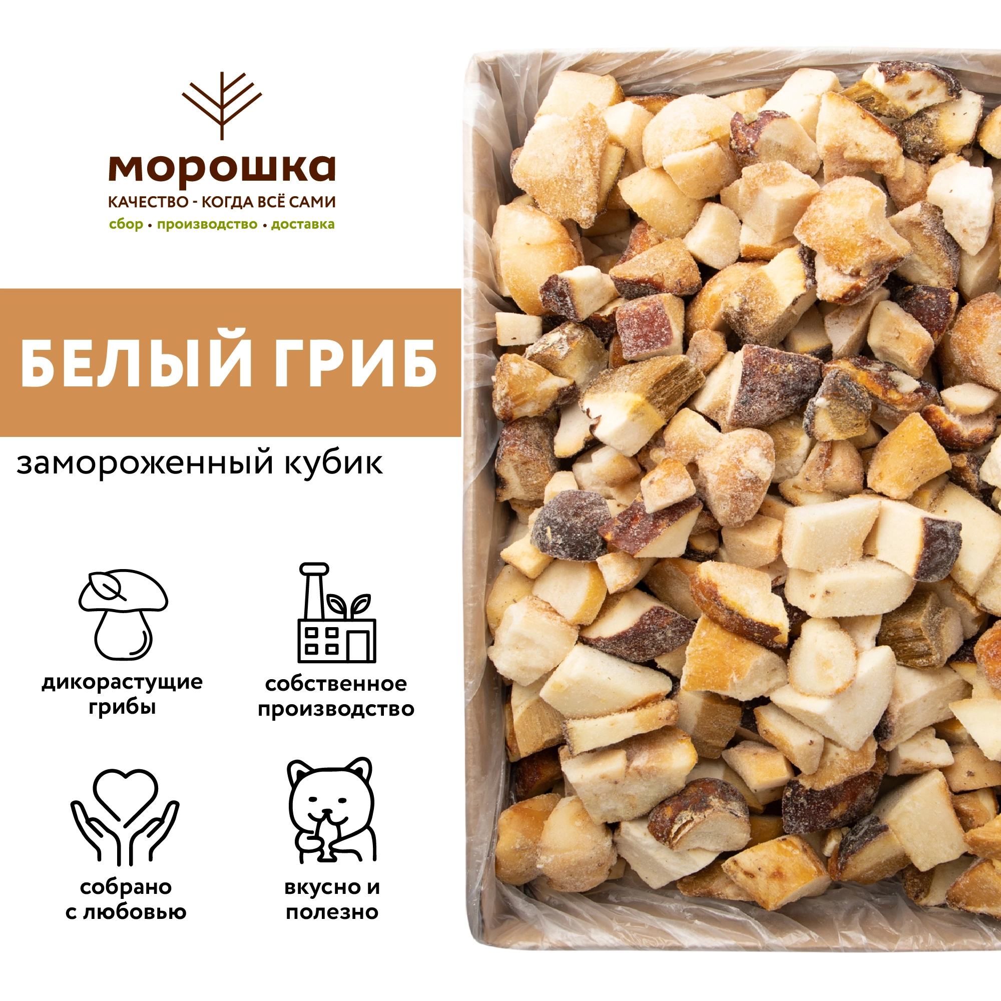 Производственная компания "МОРОШКА" занимается заготовкой и реализацией ягод и грибов. У Нас можно купить Белые грибы в Москве с доставкой на дом и в офисы.