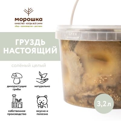 Грузди настоящие соленые, целые, холодного засола. 3,2 л. Чистый вес грибов 2,2 кг. Россия. Засолены по старинному, проверенному десятилетиями рецепту со специями - душистым крупным черным перцем,чесночком и ароматным укропом, который сохраняет груздям крепкую хрустящую консистенцию и придает аромат.
