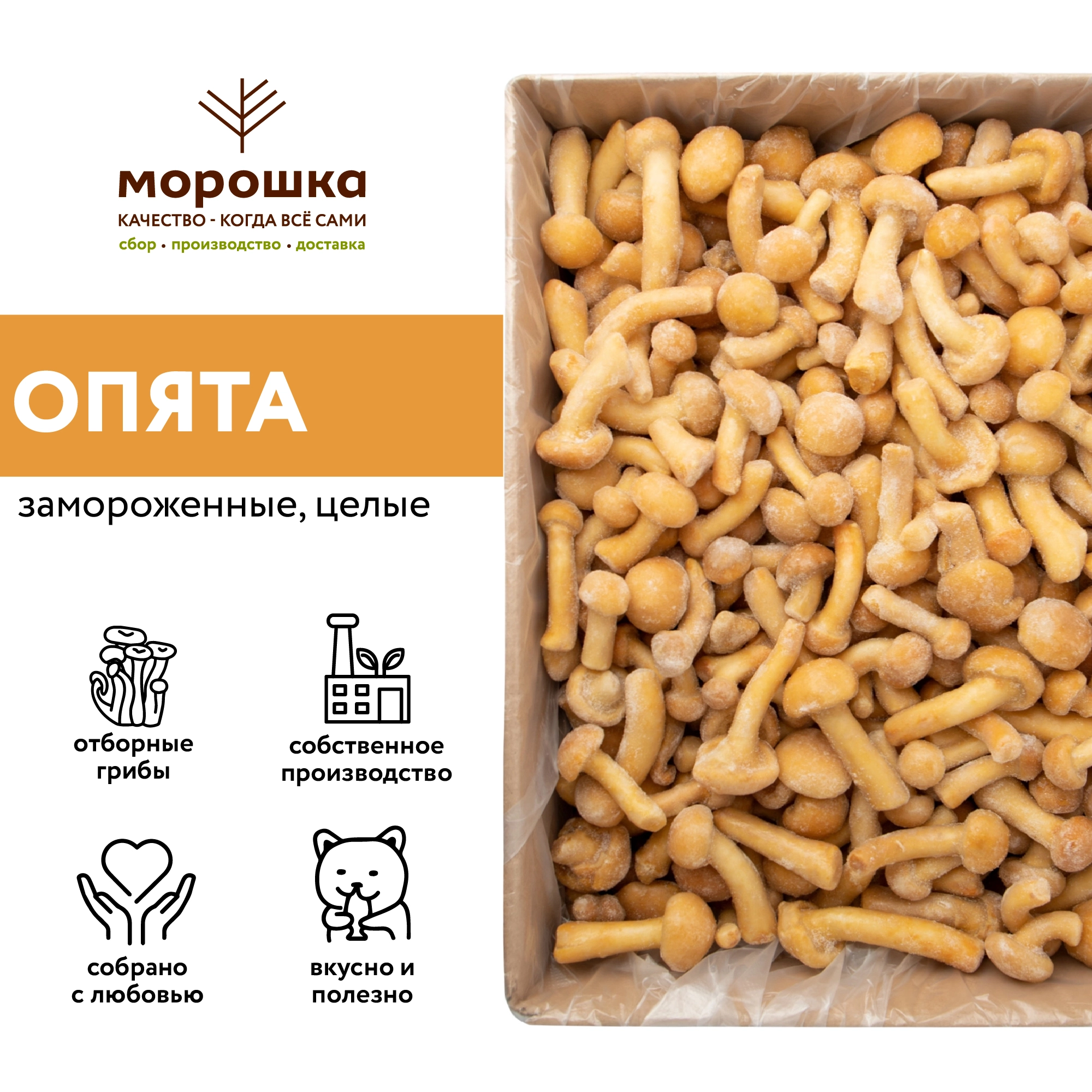 Мы в интернет-магазине «МОРОШКА» рекомендуем включить грибы в еженедельный рацион. У нас вы найдете быстрозамороженные опята намеко: натуральные, безопасные, удивительно вкусные. Вся продукция прошла строгий контроль качества и имеет сертификаты.