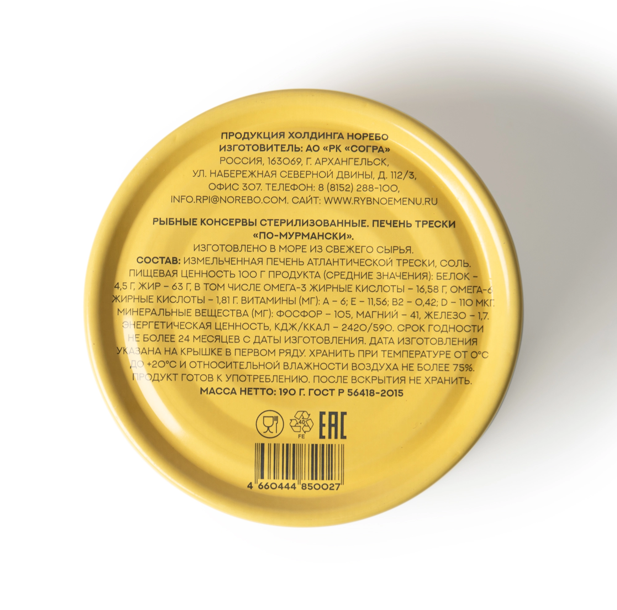 Производитель: АО "Таулер", г. Мурманск, произведено на БОРТУ РЫБОЛОВНОГО СУДНА.