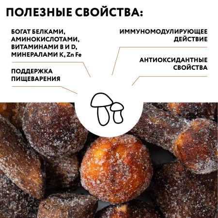 Этот гриб – богатый источник углеводов, жиров и клетчатки, а также витаминов группы В, А и С. Кроме того, он содержит в себе такие вещества как калий, магний, фосфор, железо, калий и натрий.