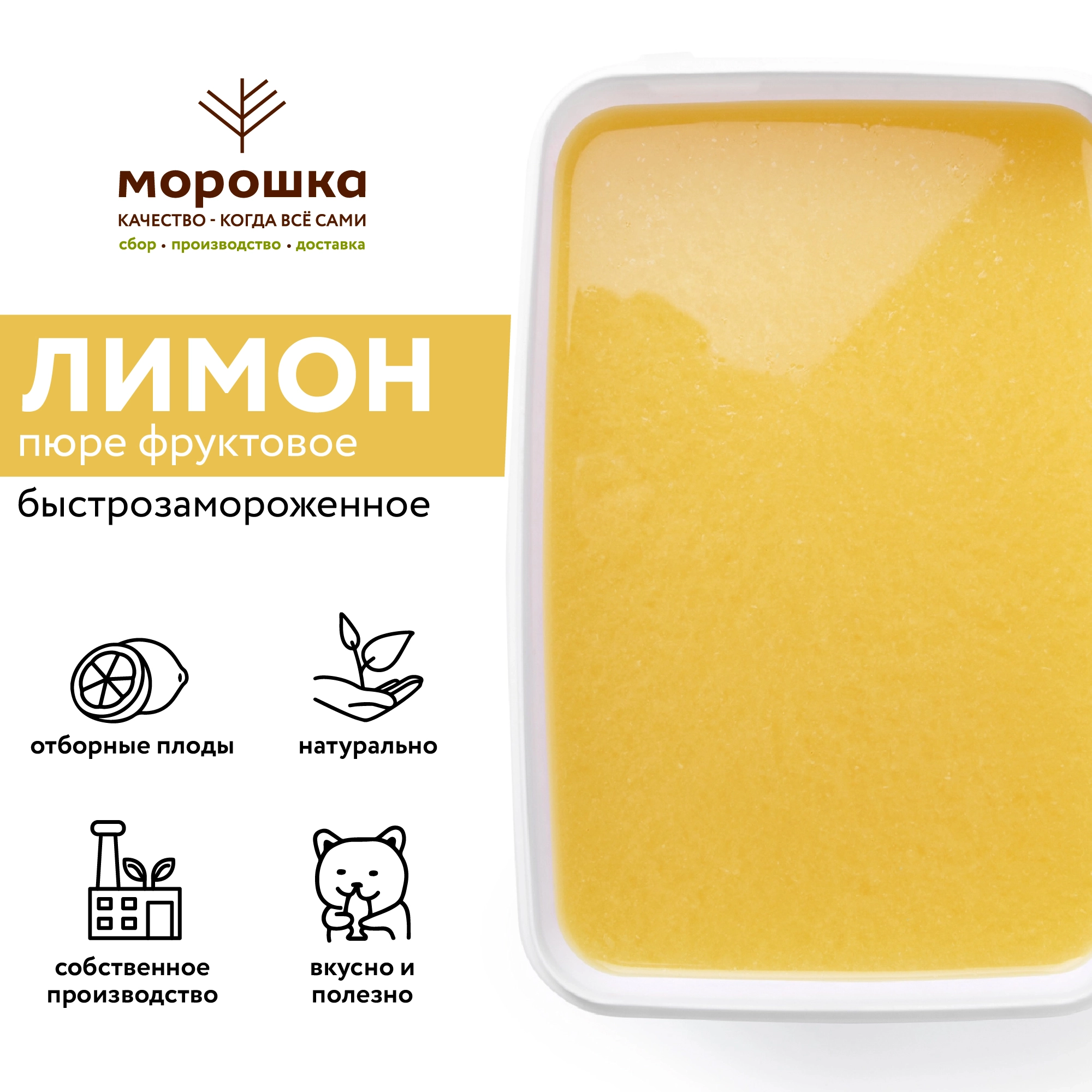 Попробуйте наше замороженное пюре, экспериментируйте в приготовлении различный блюд и наслаждайтесь освежающим ароматом спелого лимона.