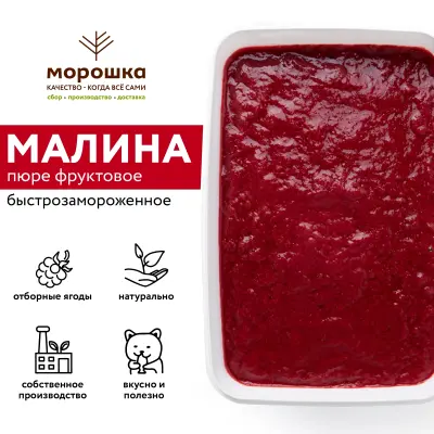 Фруктовое пюре замороженное торговой марки "Морошка", малина.