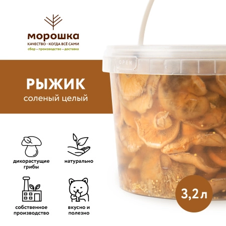 Компания «Морошка» предлагает вам деликатесные грибные консервы собственного производства "Рыжик солёный целый" горячего посола, которые станут идеальной закуской на вашем праздничном столе и никого не оставят равнодушным.