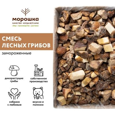 Ароматные лесные грибы, порезанные и бережно замороженные для Вас, отлично подойдут для приготовления любых блюд - супов, жаркого, жюльенов, рагу. Грибы порезаны кусочками среднего размера, при желании и в зависимости от рецепта их можно еще измельчить. Смесь имеет непередаваемый грибной запах и вкус, который не оставит равнодушным ни одного любителя даров леса!