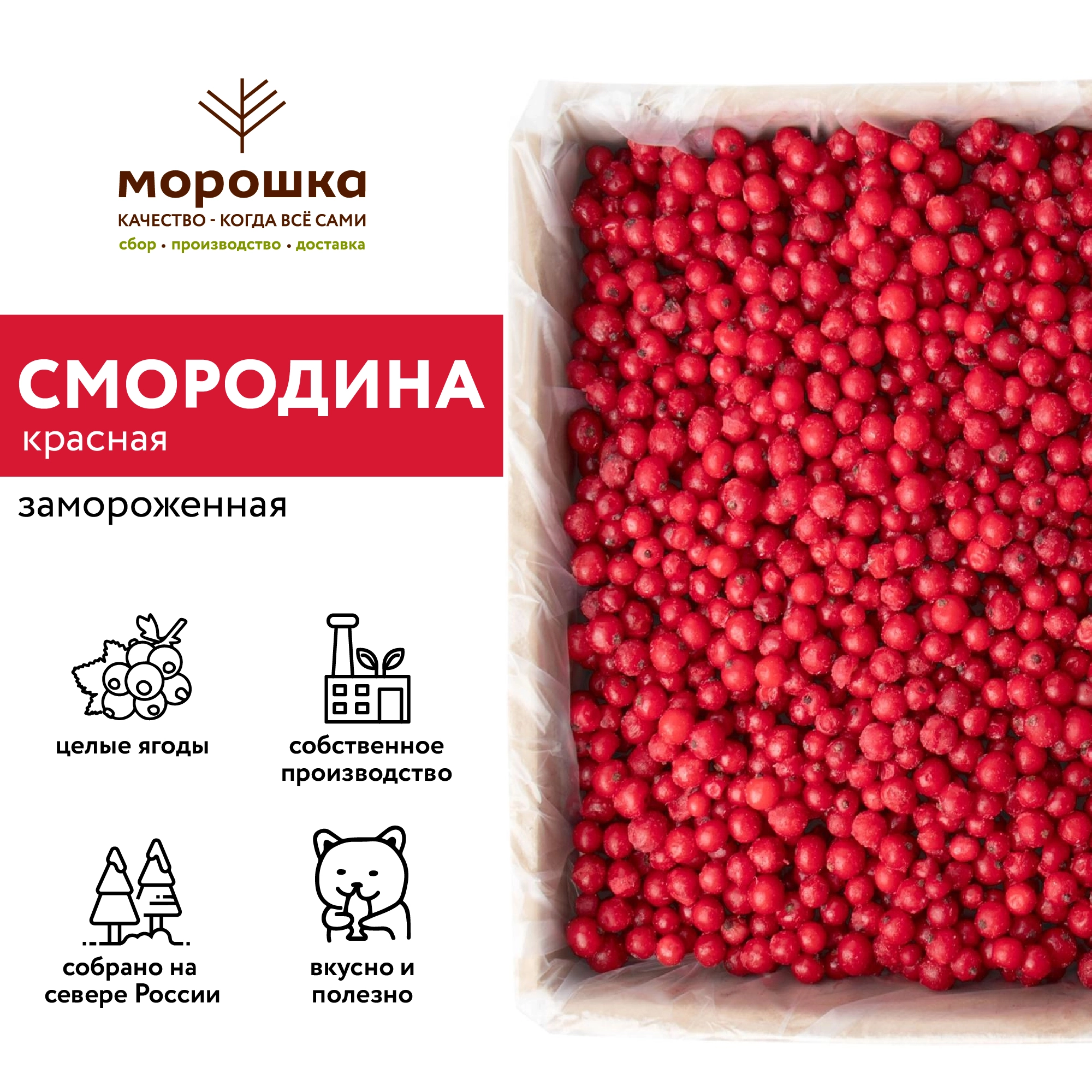 Производственная компания "МОРОШКА" занимается заготовкой и реализацией ягод и грибов. У нас можно купить смородину красную свежую в Москве с доставкой на дом и в офис.